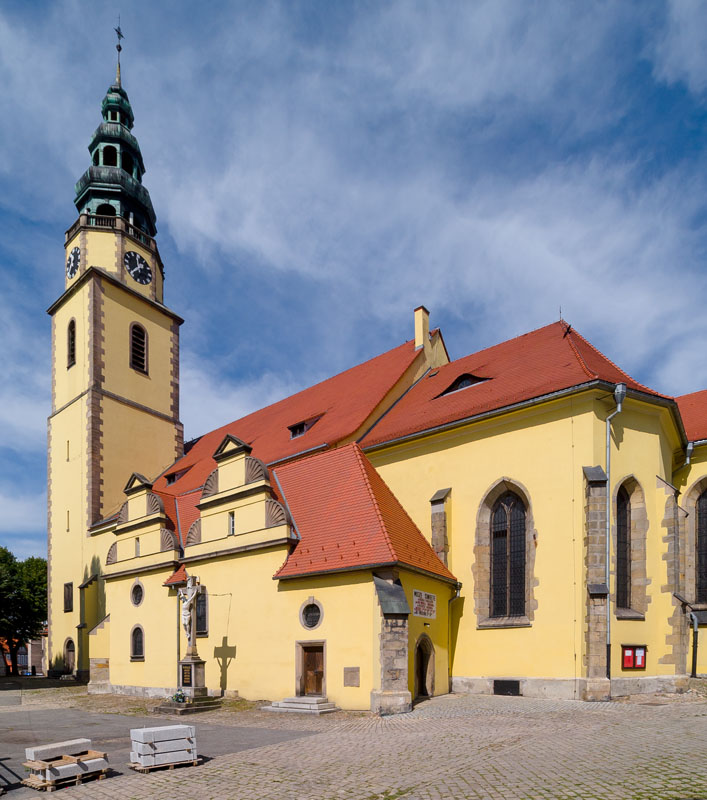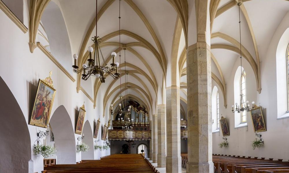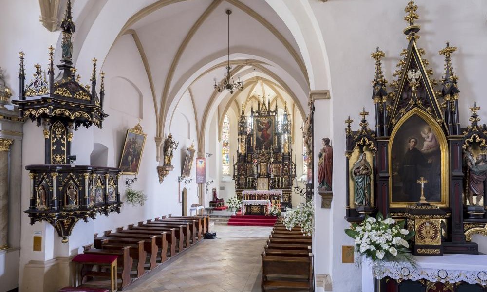 Kościół istniejący od XIII w. Skomplikowana sylweta kościoła - od wschodu średniowieczna, od zachodu dwudziestowieczna nawiązuje do renesansu śląskiego, jest wynikiem licznych przebudowań od XIII do XX w. Obecny kościół halowy, z wieżą od południa, od zachodu dwuszczytowa elewacja frontowa z neorenesansowymi portalami z pocz. XX w. We wnętrzu godne uwagi: rzeźba Madonny z dzieciątkiem (XV w.), kamienna chrzcielnica (1577), barokowe rzeźby i krata, neogotycki ołtarz i ambona.