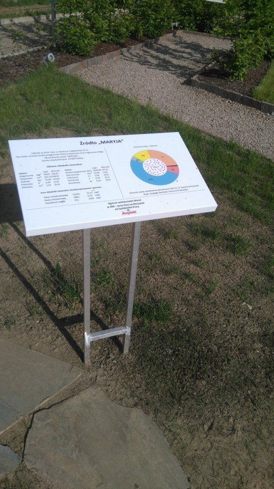 Z sezonowej pijalni wody mineralnej w Ogrodach Biblijnych wypływa szczawa wodorowęglanowo-(HCO3) wapniowo (Ca) magnezowa (Mg). Mineralizacja wody wynosi 1405mg/l, a zasoby eksploatacyjne źródła to 24 000 l/dobę.