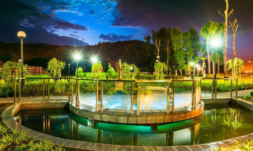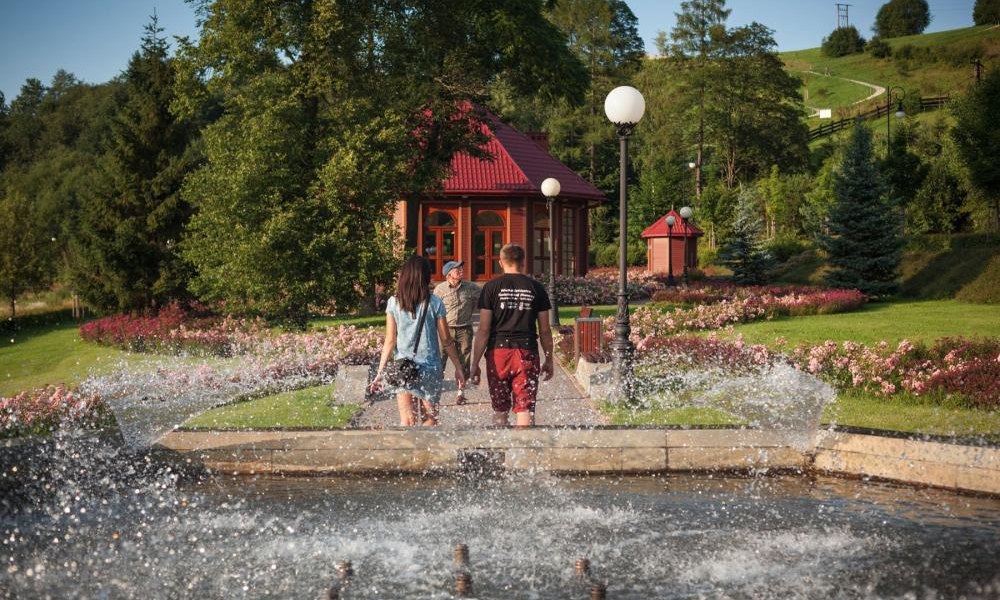 Konstrukcja ogrodów składa się z przestrzeni otwartych, dzięki czemu ich spora część w ciągu dnia jest dobrze nasłoneczniona, z czego chętnie korzystają turyści, zażywając kąpieli słonecznych. Helioterapia – metoda leczenia promieniami słonecznymi została udowodniona na początku XX w., a jej odkrywca, duński lekarz Niels Ryberg Finsen, otrzymał nagrodę Nobla. Za pomocą promieni słonecznych możliwe jest łagodzenie dolegliwości skórnych. Ponadto słońce doskonale działa na układ nerwowy. Dzięki słońcu czujemy przypływ energii, jesteśmy bardziej szczęśliwi i zadowoleni, a także w naszym organizmie wytwarza się witamina D3, niezbędna do jego prawidłowego funkcjonowania. Dlatego też w pogodne dni zaleca się spacery lub relaks na świeżym powietrzu. W Muszynie helioterapię wykorzystywano już w pierwszej połowie XX w. Dla osób, które przed słońcem wolałyby się schować, idealne będą ławki wypoczynkowe ukryte wśród drzew obok szemrzącego strumyka.