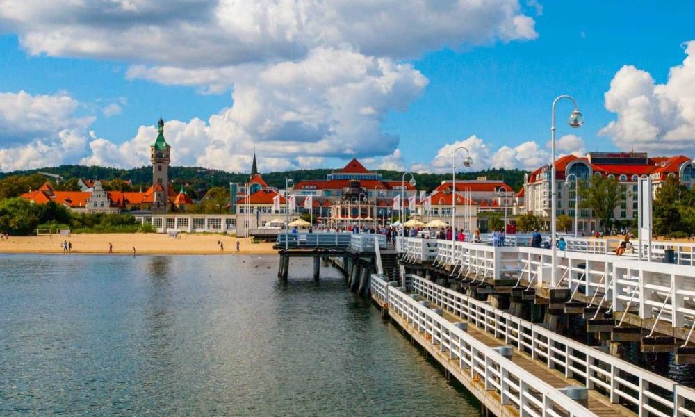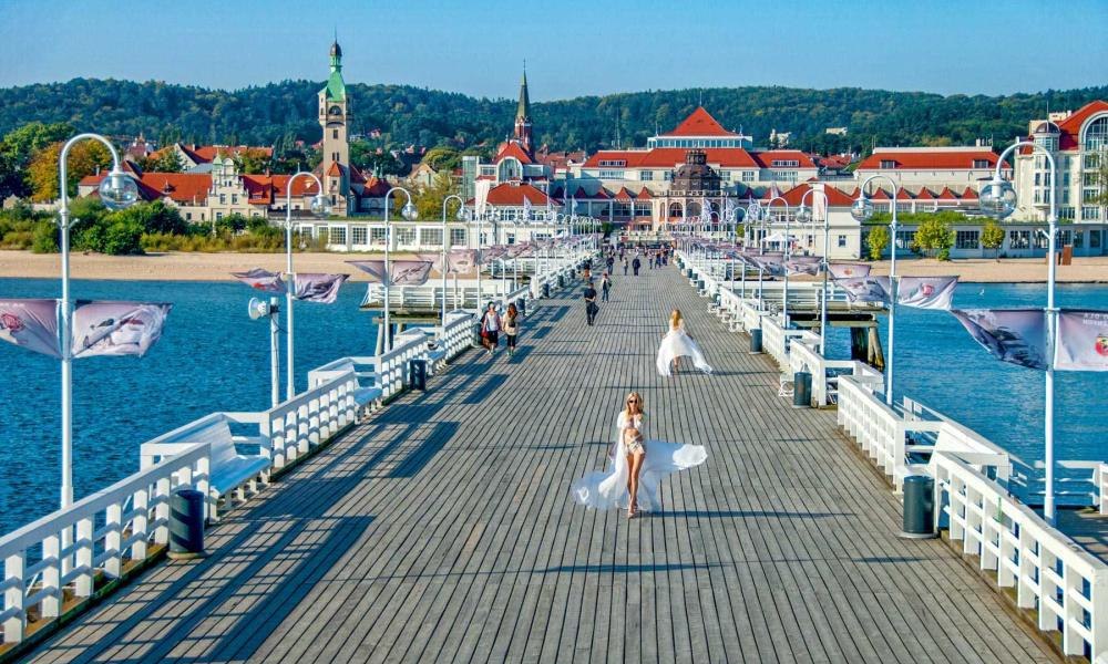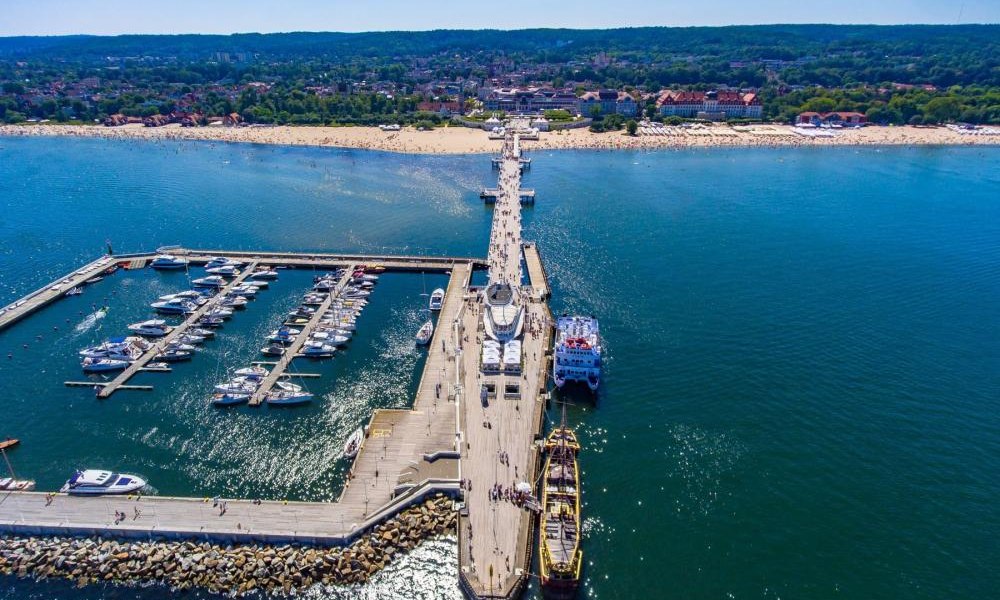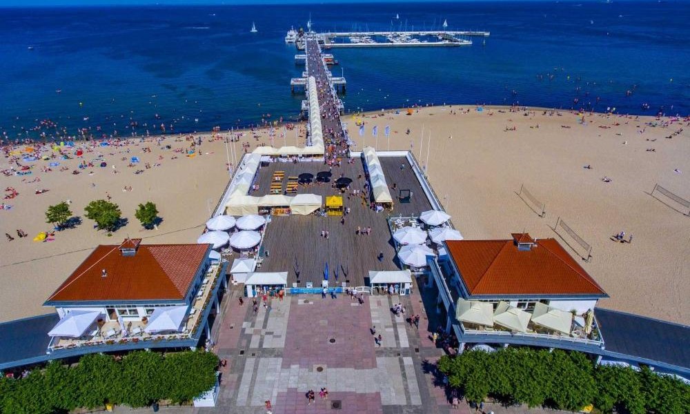 Najdłuższy w Europie drewniany pomost wcina się w morze na długość ponad 511 m. Powstały w latach 20. XIX wieku jest wizytówką Sopotu. To miejsce rekreacyjnych i zdrowotnych spacerów (stężenie jodu na częściach najdalej wysuniętych w morze jest dwukrotnie większe niż na lądzie). Na końcu molo znajduje się przystań jachtowa, której zadaniem jest także zabezpieczanie pomostu przed zgubnym działaniem fal i wiatru. Marina to miejsce prestiżowych regat oraz centrum żeglarskiego szkolenia dla dzieci. Zimą na Placu Zdrojowym u nasady mola czynne jest lodowisko.
