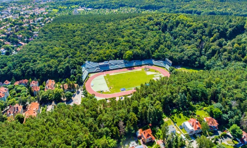 Pełnowymiarowy stadion lekkoatletyczny, miejsce treningów obecnych i przyszłych olimpijczyków. Dzięki swojemu po-łożeniu w obszarze Trójmiejskiego Parku Krajobrazowego zaliczany jest do najpiękniejszych stadionów lekkoatletycznych w Europie.