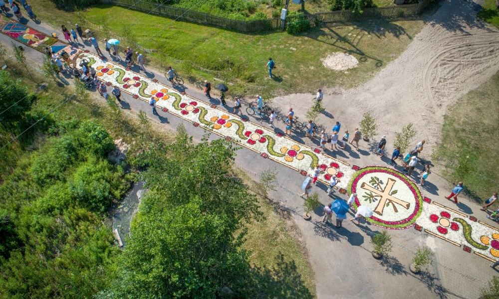 Mieszkańcy tutejszej parafii od 200 lat kultywują zwyczaj układania dywanu z żywych kwiatów o długości około kilometra. Po mszy św., która zawsze odbywa się tutaj o godz. 17.00, uroczysta procesja przechodzi po kwiatowym dywanie. To wyjątkowe przeżycie.