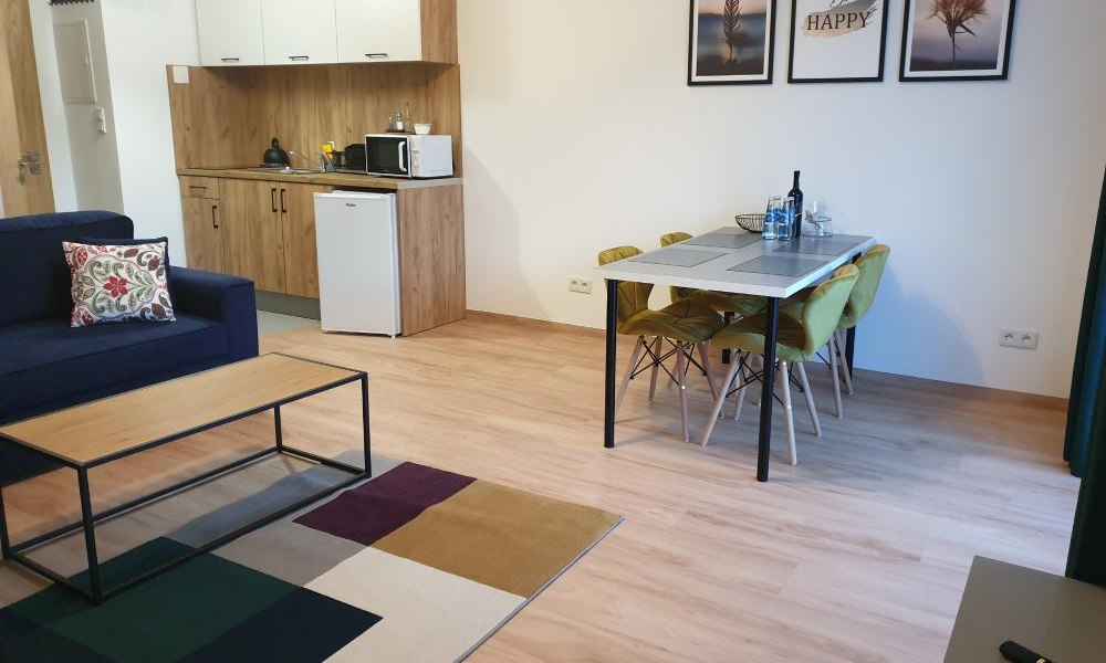 Willa VITA - Nowo wybudowany obiekt posiada bezpośredni dostęp do lasu, własny bezpłatny parking, centrum jest oddalone o ok. 750 m. Apartamenty polecane są Gościom ceniącym przestronne wnętrza oraz rodzinom z dziećmi. W każdym z klimatyzowanych apartamentów znajduje się w pełni wyposażony aneks kuchenny. Obiekt położony jest przy ślepej, cichej ulicy BEZPOŚREDNIO przy parku zdrojowym BASZTA, na terenie którego znajdują się: pijalnie bezpłatnej wody mineralnej, ruiny zamku, różnego typu siłownie plenerowe, boisko trawiaste oraz wiaty wypoczynkowe. Osoby ceniące relaks mogą skorzystać z plaż po obu stronach kaskad wodnych na potoku Szczawnik. Przez park przebiega również ścieżka rowerowa, która łączy się z zielonym szlakiem prowadzącym na najwyższy szczyt wschodniego pasma Beskidu Sądeckiego - Jaworzynę (1114 m n.p.m.). Ponadto oddalony jest ok. 1,5 km spokojnym spacerem ok. 20 minut do Centrum Rekreacji i Sportu Zapopradzie - kompleksu rekreacji wodnej z grotami sztucznej fali, jacuzzi, zjeżdżalniami i brodzikiem dla dzieci, zimą lodowiskiem a latem kortami tenisowymi. Nad całością góruje wyjątkowy w skali kraju kompleks parkowy skąd roztacza się przepiękny krajobraz Doliny Popradu. Apartamenty 4 osobowy – posiada pokój dzienny z sofą rozkładaną (2 osobowa), stół z krzesłami, w pełni wyposażony aneks kuchenny z płytą indukcyjną oraz kuchenka mikrofalową, łazienkę z WC oraz 1 sypialnię z łóżkiem 2 osobowym, prywatny balkon/taras. 6 osobowy - posiada pokój dzienny z sofami nierozkładanymi, stół z krzesłami, w pełni wyposażony aneks kuchenny z płytą indukcyjną oraz kuchenka mikrofalową, łazienkę z WC oraz 2 sypialnie w każdej łóżko 2 oraz 1 osobowe, prywatny balkon/taras. Oferta Naszym Gościom staramy się zapewnić komfort pobytu. Apartamenty posiadają osobne wejścia, a w budynku poza nimi nie mieszka gospodarz dając Gościom swobodę i niezależność. Główną naszą zasadą jest nie przeszkadzać, a jeśli trzeba służyć pomocą, dlatego też służymy pomocą przy planowaniu każdego dnia pobytu z możliwością takich wycieczek jak: Kraj – Beskid Sądecki (Pasma Radziejowej oraz Jaworzyny Krynickiej), Szczawnica, Beskid Wyspowy oraz Gorce czy Tatry, liczne trasy rowerowe oraz spływ rzeką Poprad. W okresie zimowym wyciągi narciarskie, sankostrady oraz lodowisko. Zagranica - Budapeszt, Termy na Węgrzech (Miszkolc, Eger, Hajduszoboszlo), Termy i Aquaparki Słowacji. Istnieje możliwość rezerwacji instruktora narciarstwa, tenisa, pływania, łucznictwa lub busa 8 osobowego wraz z kierowcą.