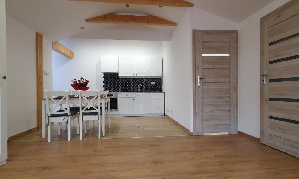 Obiekt - Apartament Abra 1 oferuje swoim gościom komfortową przestrzeń do wypoczynku. W skład apartamentu wchodzi: - duży salon z aneksem kuchennym wyposażonym w: lodówkę, płytę indykcyjną, piekarnik, czajnik elektryczny, toster oraz stół dla 4 osób; - salon wyposażony w: rozkładany narożnik, telewizor 55 cali z dostępem do kanałów satelitarnych, Wi-Fi, komodę oraz szafę; - w sypialni znajduje się dwuosobowe łóżko z szafkami; - łazienka z prysznicem; - przedpokój z możliwością przechowywania rowerów, sprzętu narciarskiego. Apartament Abra Rynek 8 znajduje się w samym sercy miejscowości uzdrowiskowej Muszyna. Obiekt oferuje bezpłatny, prywatny parking, bezpłatne Wi-Fi, widok na Rynek. Odległość ważnych miejsc od obiektu: Ogrody Biblijne - 500 m, Ogrody Sensoryczne - 1,4 km, ruiny zamku w Muszynie - 500 m. Okolica popularnej wśród miłośników narciarstwa, trekkingu i zady na rowerze. Miejscowość Krynica-Zdrój jest oddalona o 9 km od obiektu, a miejscowość Szczawnica o 31 km.